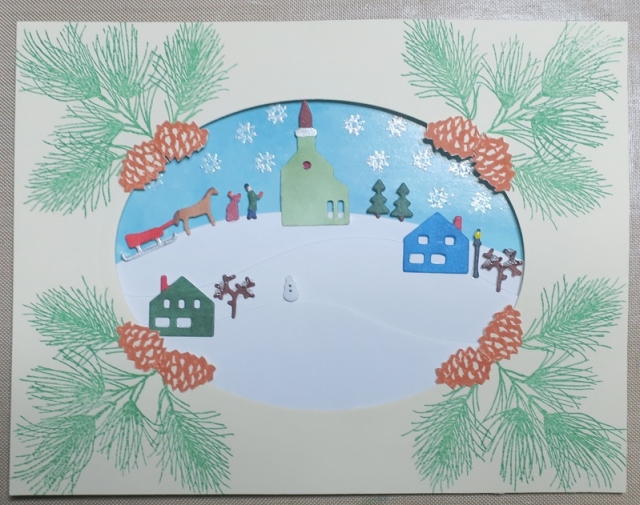The hills are a My Favorite Things die and all the rest are Penny Black dies. I colored them with Copics. I added stickles to the trees.