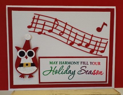 Punched Santa Owl (Stampin' Up), and adhered to white CS. Adhered music die cut. Stamped quote (Hero Arts), and matted to red CS. Adhered to white CB. TFS