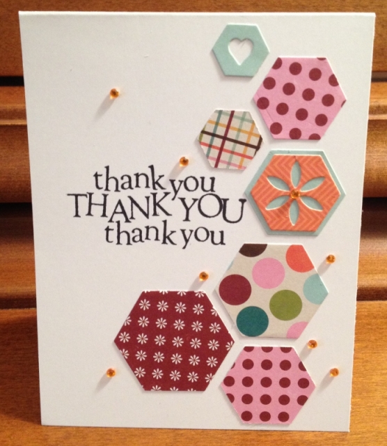 Yesterday I played around with a new Sizzix triplits wafer thin die set. There are 14 hexagons in it! I saw something similar on Pinterest and cased it. I made this card for the friend who gave me this set for my birthday.