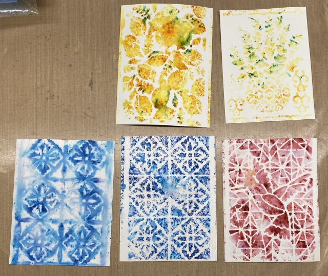 So I think I learned that only a geometric pattern is going to work for the brusho powder through stencil technique. It was a good challenge for me though!