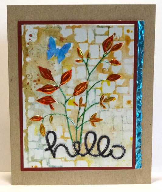 Yes, leaves and fall colors are beginning to fill my cards. For this background I used the stamping with embossing folder technique with distress inks.