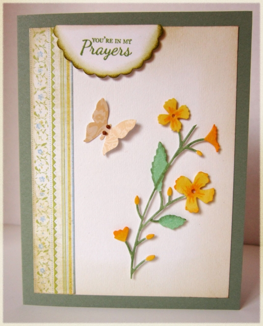 Pretty coloring on your die cut and perfect patterned paper. I like the placement of the sentiment too.