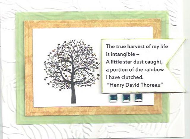The embossed base and that tree are lovely. And another wonderful sentiment.