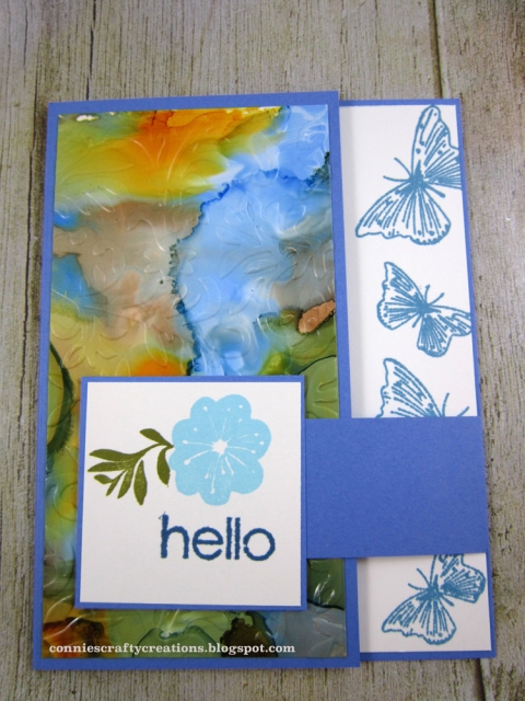 Beautiful embossed piece! I like the card design with the butterflies stamped off to the side. TFS. Daria