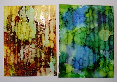Here are my backgrounds. The first one was done on yupo paper and I used copper foil on it. The second one I used white glossy card stock and I did not use foil on it.