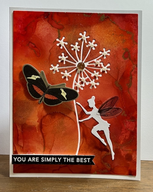 The flower die is negative space, the fairy is a positive die cut from white cs and glued on top.