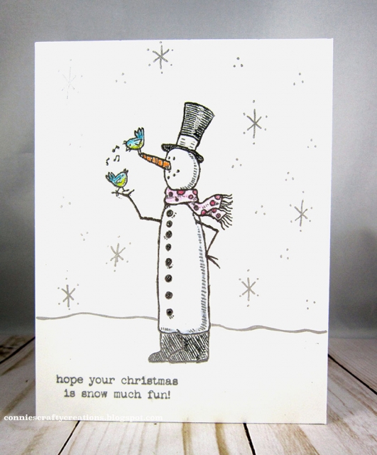 Stampin up - Snow much fun stamp set, embossed in silver, colored w/pencils