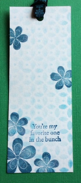 Lovely BG and I like how it matches the ribbon. The flowers I can kinda see the sparkle which helps me imagine what it's like IRL. pretty bookmark!
