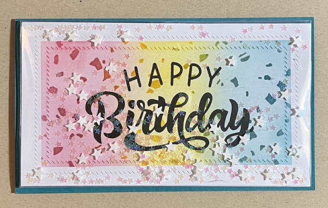 We made this infinity shaker card in Taylored Expressions' Stamp Joy event. I was happy about it because I had already bought some of the shaker panels but hadn't used them yet.