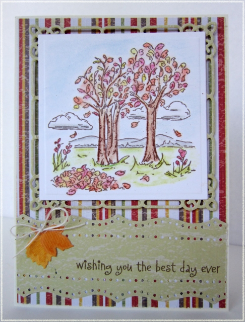 A pretty, fall card! I really like the leaves and twine, perfect embellishment!