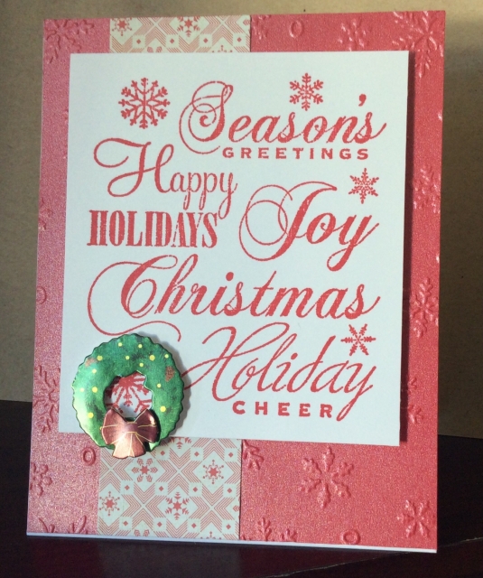I love the LO of this one! Love the stamping here. That wreath sticker is so neat! I agree, the luminere paper is really pretty. I love the embossing on it too. TFS