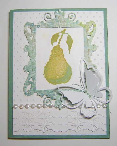This card shows the Rock N Roll technique on the pear. Love how images look when this technique is used.
