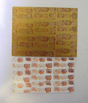 I wanted to try last demo since I have a lot of wild animal stamps. I forgot a step (to color the background first with alcohol ink) so the white one can be used for a brick wall I guess. On the other piece I used gold glossy cs. This was difficulty because the little pieces did not stick well to the other felt. I don't know what felt she had but mine did not stick. Was fun trying anyway.