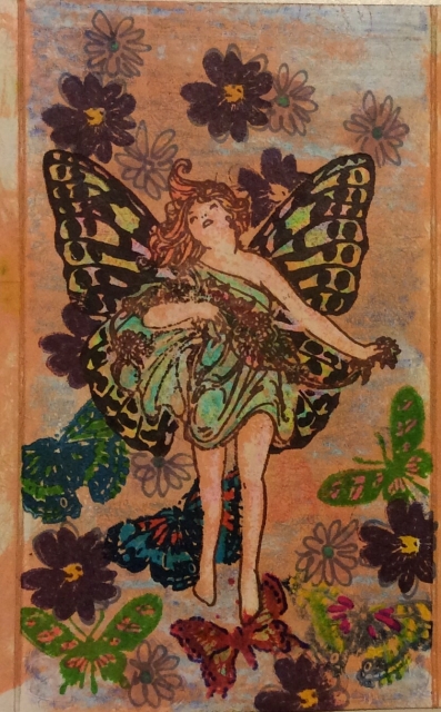 Daniel, I recognize the large butterfly stamp that you made into fairy wings from other of your projects. This really works for grounding with the cluster of flowers and small butterflies for the fairy to befriend.