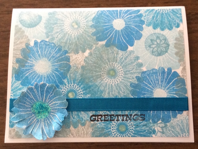 A pretty background and the perfect matching embellishment! Love those flower stamps!