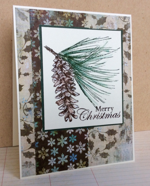 This is so pretty! I love the dark green needles and the way you colored the pine cone. Nice layout and choice of pp too.