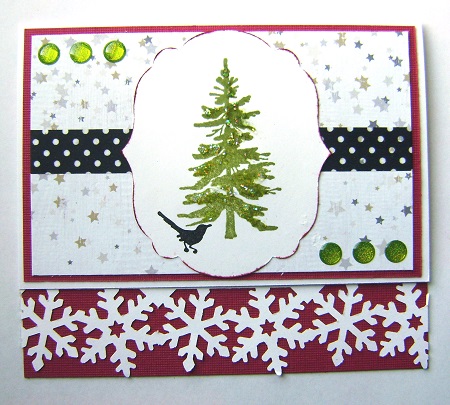 This is beautiful! I like the little bit of glitter on the tree and how you inked the center die-cut lightly. TFS!