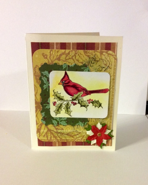 Beautiful job coloring your cardinal image! Love the blast from the past in your flower ... I bet I have one somewhere!