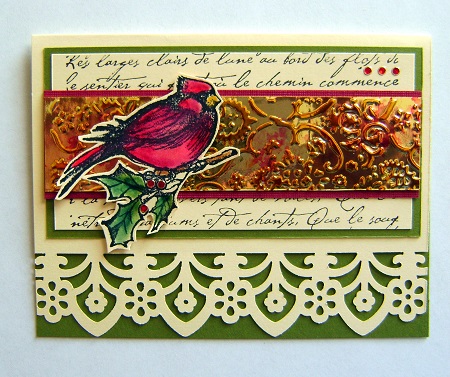 Wow! The textured and inked mirror cs is gorgeous! Such a pretty card. You always do a beautiful job coloring the cardinal!
