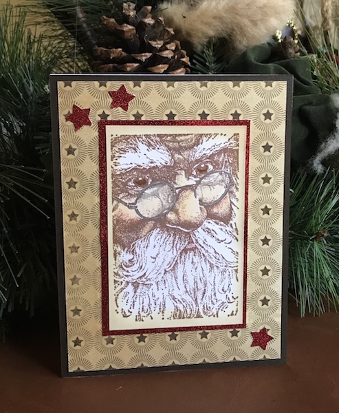 The image is colored with Prismacolor pencils. Sometimes I colored Santa's glasses silver, sometimes gold. I darkened his eyes a bit and added a white gel pen highlight.
