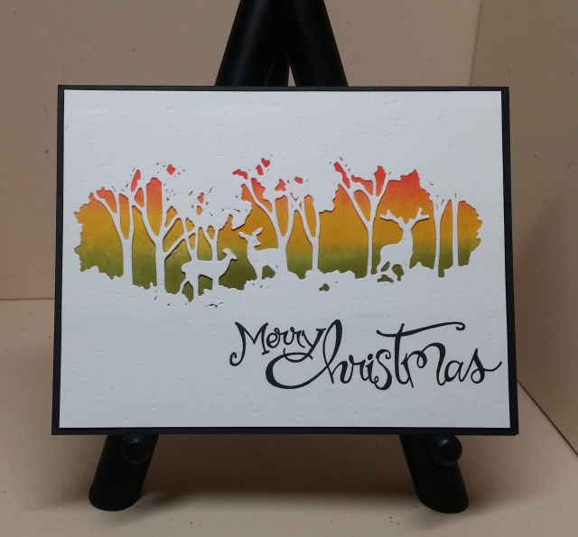 ETA: I have altered the die-cut on all of the cards. Here is the one I posted here at Artsy Inkers. I had already removed the fourth deer. Now I did some more trimming. I detached the stag's antlers from the nearby trees, and I detached the doe's ear from the leaves I like it much better this way.