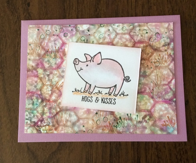 I don't think I've seen that alcohol ink and embossed technique. It's very cool! I like your choice of stamps in the background. Cute card! Thanks for playing!