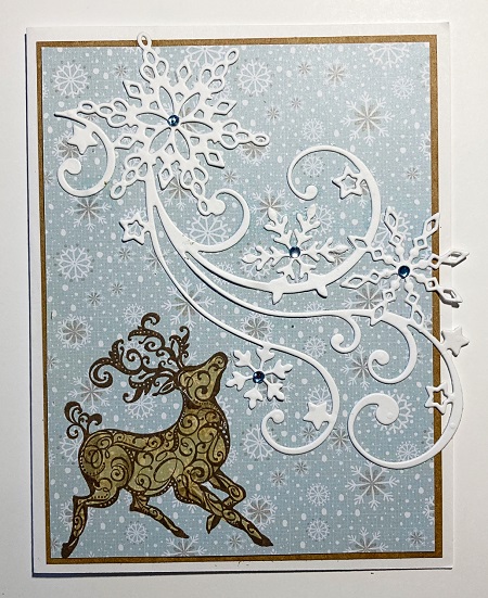 Love the detail in the deer and how great it goes with your snowflake swirls, Lovely background paper too!