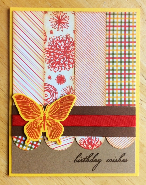 Happy colors, great for a birthday. Using the craft cardstock at the bottom allows it to befor boy or girl. Love the happy butterfly!