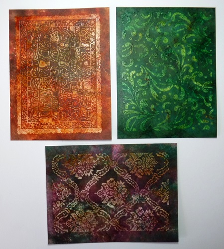 These are my alcohol ink backgrounds. I used smooth heavy weight watercolor paper. I love the subtle look of the background image in all of these. I used gold mixative on the green bg but it did not show up well even in person.