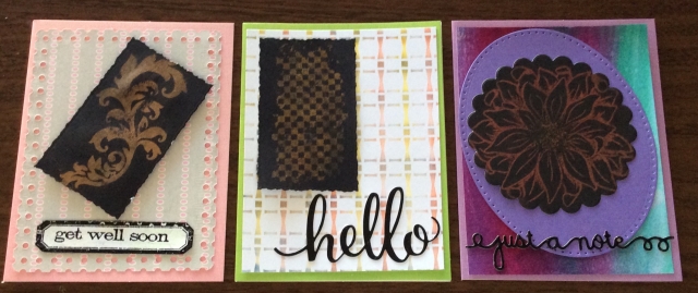 I am impressed you made cards with all the pieces parts. I usually run out of ideas on at least one. These all look great!