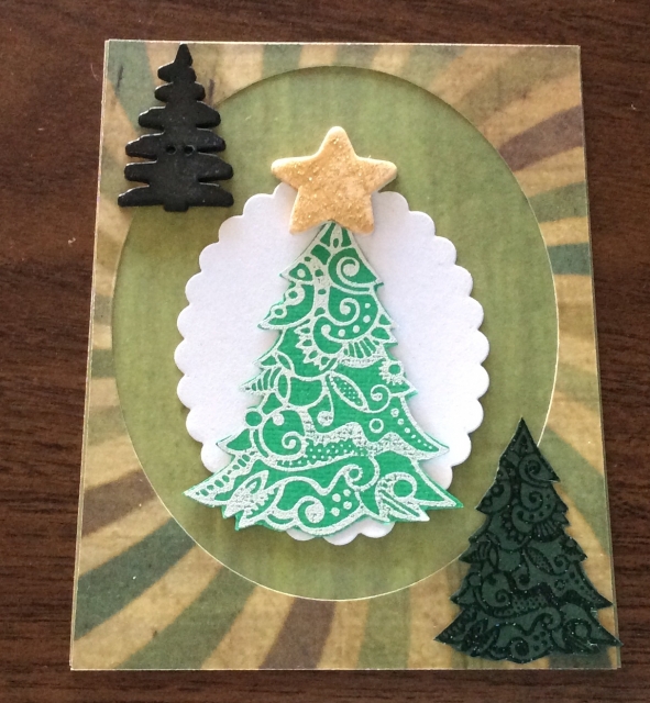 I like the paper on the frame, and a nice selection of Christmas trees!