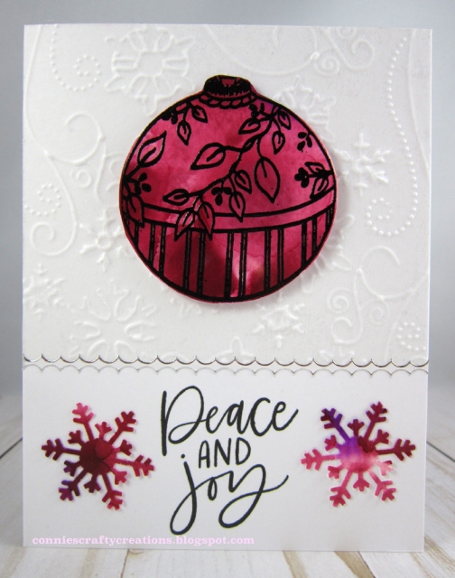 Impression Obsession - Leaf Ornament, stamped and embossed w/black embossing powder onto an Alcohol ink background