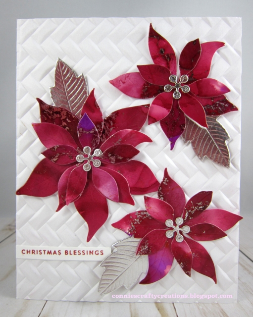 Poppystamps - Blooming Poinsettia die cut from Alcohol inked background and silver mixative