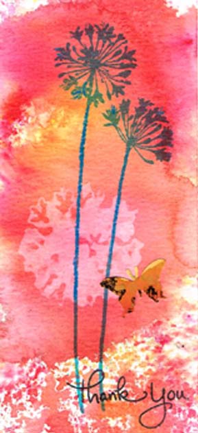 I used a Stampendous clear set for this card. I used a large single stamp to make the water stamped image in the center of the card. The butterfly is punched from a scrap of alcohol ink paper.