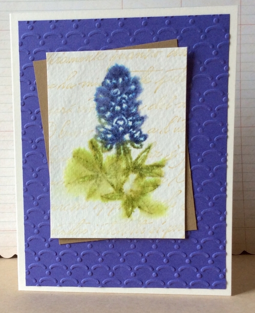 After it dried, I stamped the script stamp over top of the image.