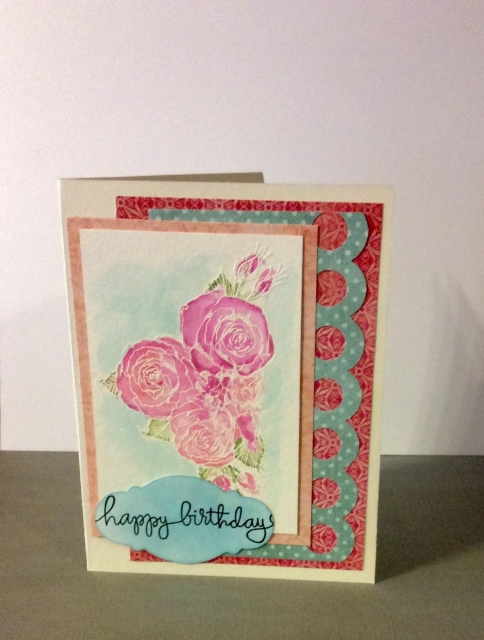 Image is from I brake for stamps- rose corner, heat embossed on to watercolor paper with white embossing powder and colored with distress inks.
