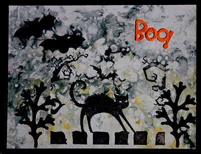 That background! Love it. I haven't done this technique in ages, It makes perfect backdrop for your Halloween card! Great job