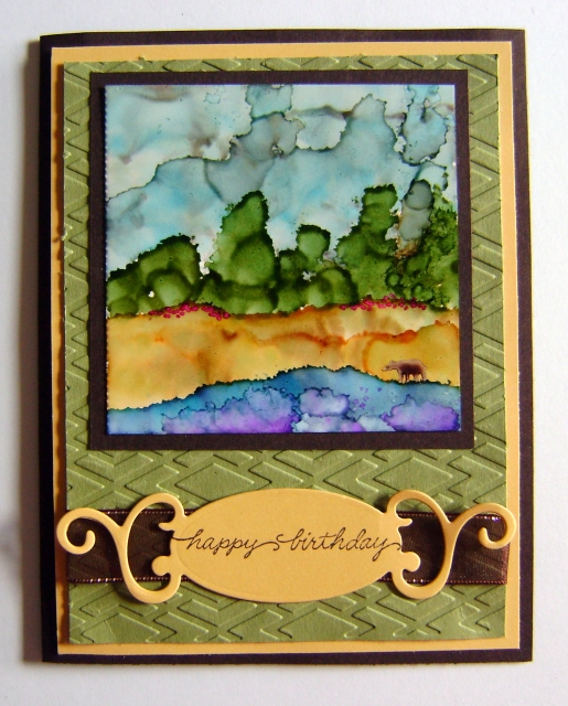 Here is another project we did at our stamp club and made a smaller scene on Yupo paper. I stamped a small bear by the water using a peg stamp.