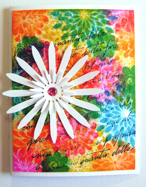 Here another card using the smack down technique LeighAnn showed us. This time I used solid flower stamps.