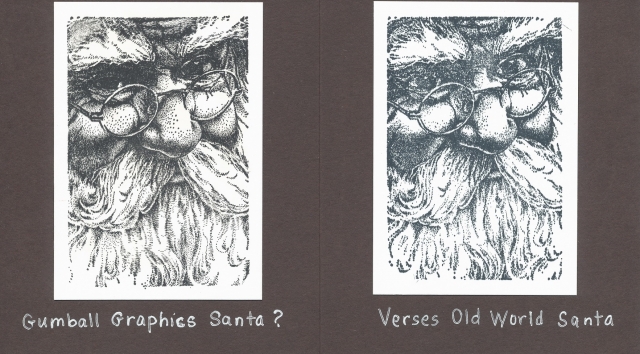 Gumball Graphics Santa (?) and Verses Old World Santa