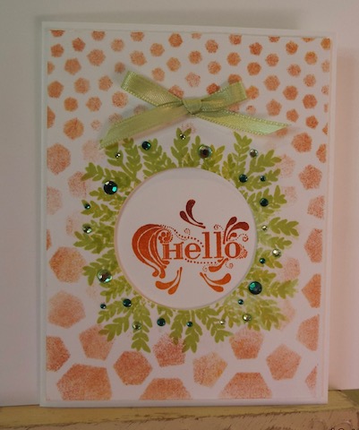 Cased this card design from Laura Bassen on Altenew, and just had to play with my version of it. Stamped the leaf design in the center, then die cut circle out of center. Stamped sentiment to circle. Placed stencil over image, and sponged ink in desired areas. Embellished with bow and gems. Mounted piece with foam tape to card base. Stamps: Leaf - Hero Arts. Quote - Hampton Art. Stencil - Vicki Boutin TFL