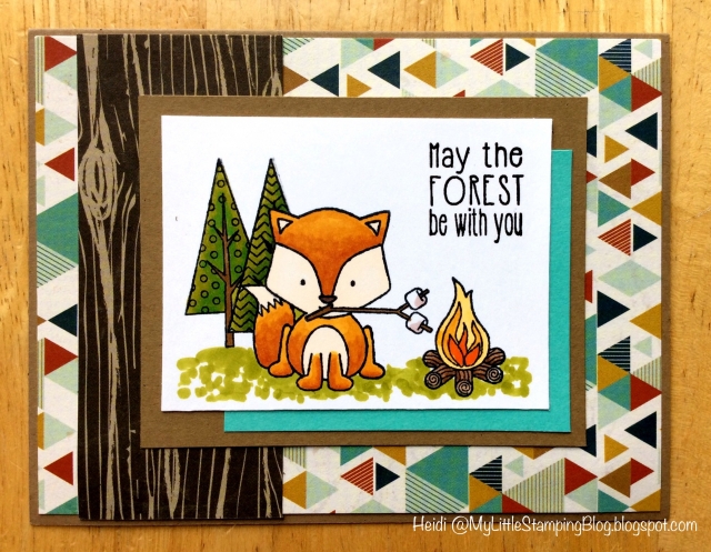 Supplies: Darcie’s LLC Forest Be with You stamp set, Memento and Versfine black inks, Spectrum Noir alcohol markers, My Mind’s Eye Happy Camper 6x6 paper pad, other supplies from my stash
