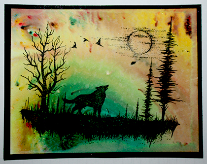 I created four backgrounds using my Color Bursts and found this one reminded me of the Northern Lights, so I chose to use this with the silhouette stamp. I love this stamp and have lots of plans to make masculine cards with it.