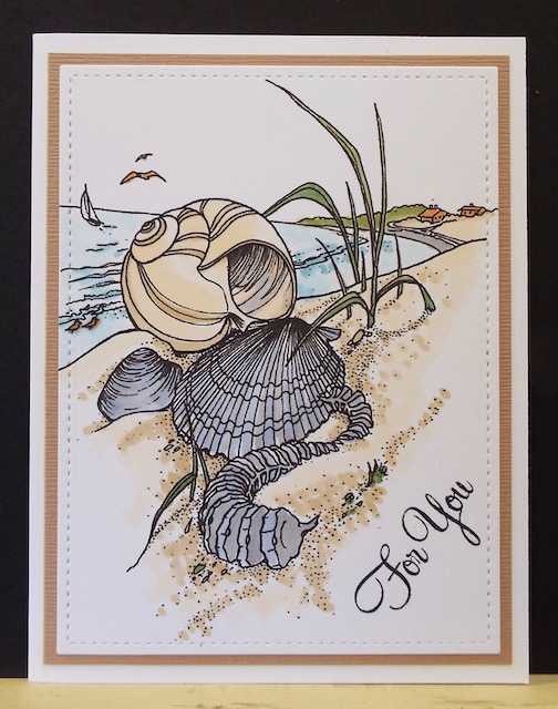 Loved this digital image (Dover Publications) and just had to print and color it. Colored with Copics, and stamped quote (Hero Arts). Placed image onto die cut (Lawn Fawn), and matted to light brown CS, then to white card base. TFL