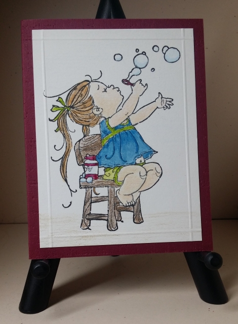 This card is for my eldest sister. Her grandchildren called her Grandma Bubbles because she always blew bubbles with them. She had stuff to make giant-sized bubbles as well as the regular ones.
