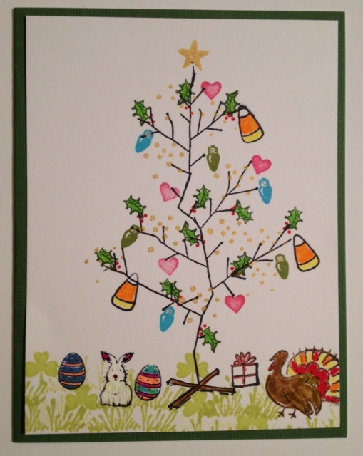 I made this for Daniel's Holi-Daze inktoberfest challenge! He said using lots of stamps makes him happy, well I used A LOT of stamps, and even a little masking (turkey, present, bunny).