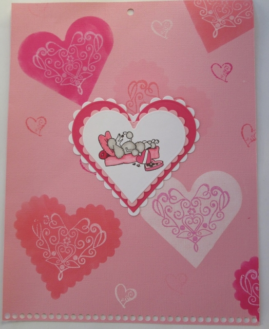 Kit items - the poodle, the heart mats, and I used the paper I cut the hearts out of as a stencil to create the background.
