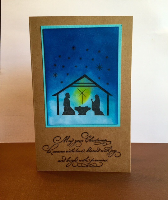Image and sentiment are both from Stampabilities. I stamped the image with versafine black onyx ink and then blended distress inks in tumbled Glass, broken China, salty ocean, and faded jeans. I also added a little mustard seed around the star. I went over the black lines with a clear Sakura glaze marker. TFL :-)