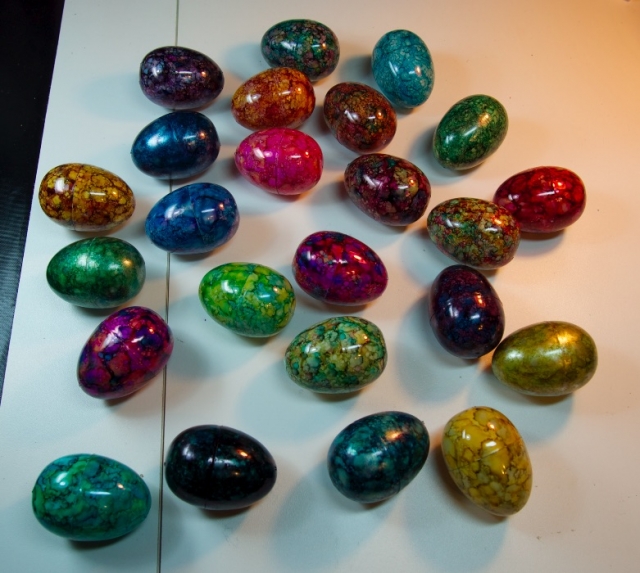 These are all the Easter Eggs I colored today with AI. I used white plastic eggs from Hobby Lobby.