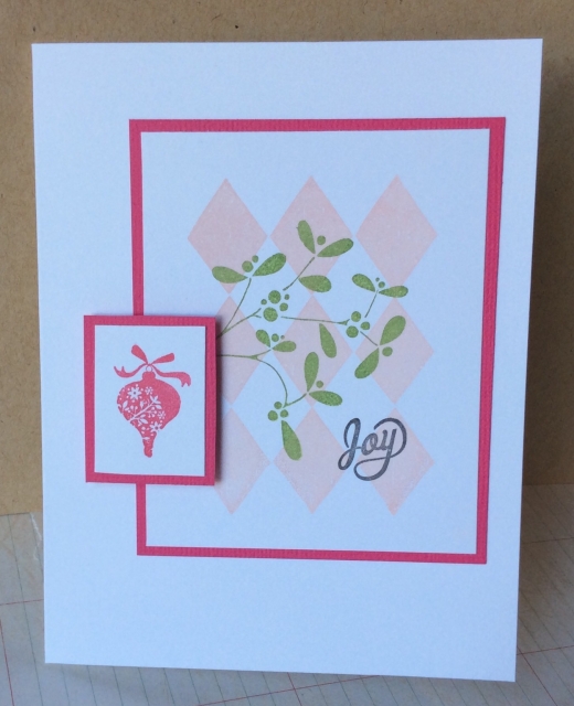 Another pretty card with the shadow stamping. I love the pop of red with the ornament stamp and your mats